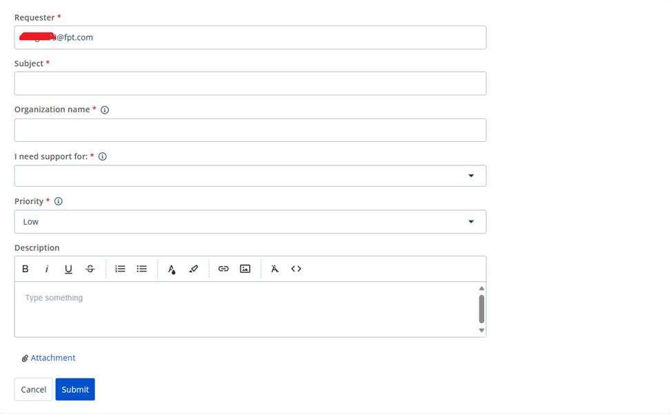 • Subject: Tiêu đề của yêu cầu hỗ trợ