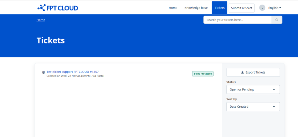 • Khách hàng cũng có thể chủ động kiểm tra trạng thái xử lý của ticket trên Portal support của FPT Cloud bằng cách truy cập: file file