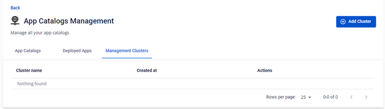 Để làm việc với cụm App Catalog đã được khởi tạo, đầu tiên bạn vào xem thông tin chi tiết của cụm đã được khởi tạo. Xem thông tin chi tiết của cụm, Click vào Catalog Id để xem thông tin chi tiết Với một App Catalogs Management, bạn sẽ được cung cấp thông tin chi tiết App Catalog tương ứng với từng repository, thực hiện quản lý các k8s cluster để deploy applications.