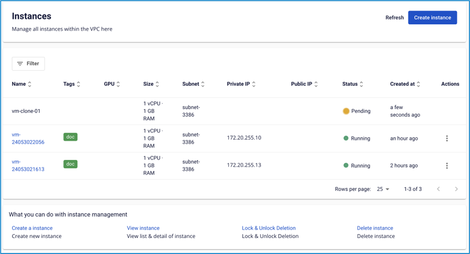Bước 3 : Hệ thống tự điều hướng sang màn hình danh sách instance. Clone instance sẽ được khởi tạo ở trạng thái “Pending”