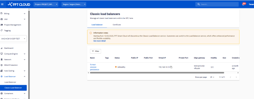 - Hệ thống cho phép user xem thông tin gateway khi sử dụng Load Balancer Classic