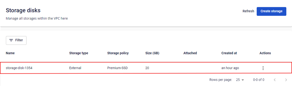 file Bước 3 : Chọn Create storage disk. Hệ thống sẽ tiến hành khởi tạo và thông báo kết quả. Nếu thành công, Storage Disk mới sẽ được hiển thị ở trang Storage Disk Management. file