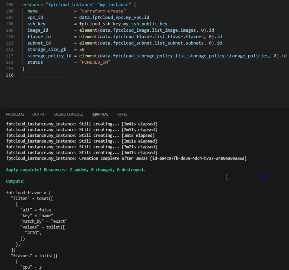 - Kết quả sau khi chạy script tạo instance thành công:
