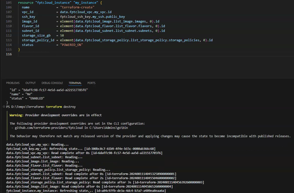 - Sử dụng lệnh “terraform init” để cài đặt FPT Cloud Provider: