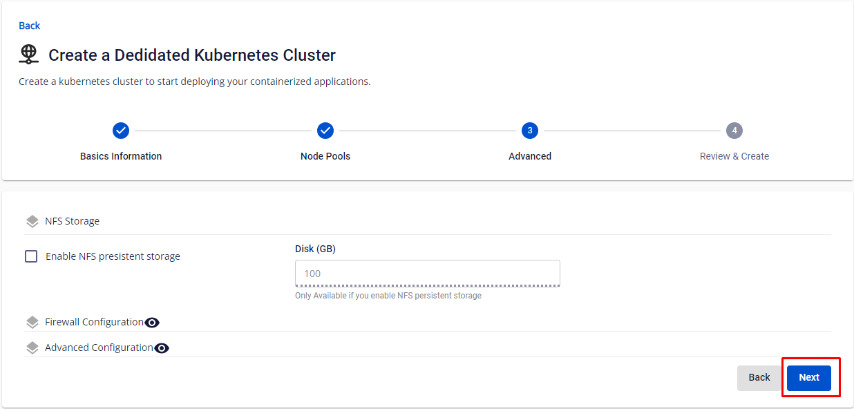 - Enable Firewall : Select to configure Edge IP, Public IP, Private IP with Kubernetes Cluster.