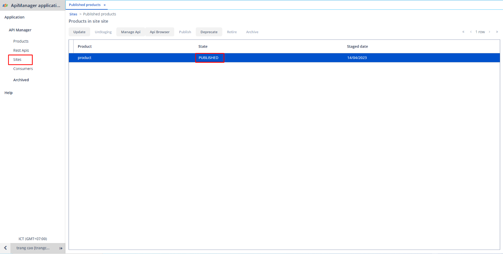 Note : When a product is staged onto a site, consumers still cannot use the APIs within that product. Users need to publish the product for consumers to use it.