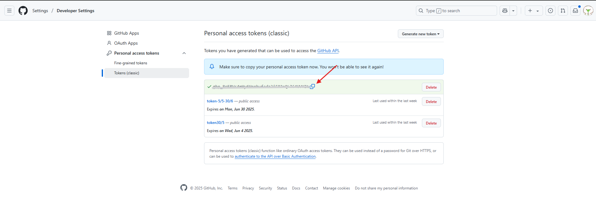 Bước 1 : Sau khi đã chọn org/team, nhấn vào GitHub để đến màn tích hợp GitHub: anhfsec Bước 2 : Sau khi thiết lập quyền truy cập vào Private/public repository , nhấn vào Create a personal access token , sau đó bạn sẽ được chuyển đến GitHub để tạo token anhfsec Bước 3 : Chọn Tokens (classic) ở thanh Menu bên trái và chọn Generate new token (Classic) anhfsec anhfsec Bước 4 : Điền Note và tích chọn repo để sử dụng được các tính năng anhfsec Bước 5 : Nhấn Generate Token để tạo token anhfsec Bước 6 : Copy link của token anhfsec Bước 7 : Paste link token vào phần Personal Access Token và nhấn Test Connection anhfsec anhfsec Lúc này hệ thống sẽ kiểm tra các miền bắt buộc và valid Personal Access Token , nếu một trong hai failed, màn hình sẽ hiển thị thông báo Test connection Failed(invalid PAT) Nếu thành công, màn hình sẽ hiển thị Test connect successfully Bước 8 : Nhấn vào Integrate.
