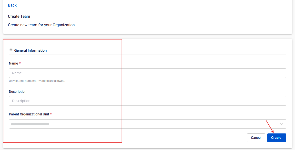 Chỉ Org AdminTeam Manager có quyền chỉnh sửa Bước 1 : Nhấn vào Create teamTeams anhfsec Bước 2 : Điền hết thông tin Team Name , DescriptionParent Org Unit anhfsec Bước 3 : Nhấn Create.