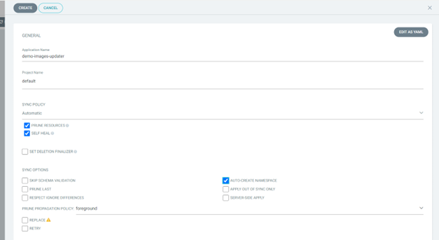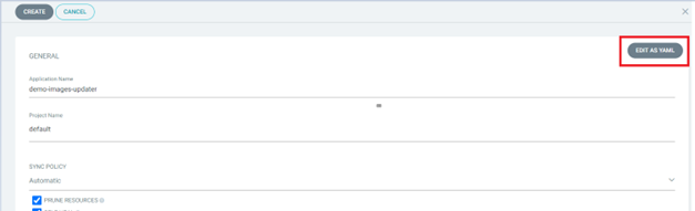 b. Bước 2: Cấu hình images pullSecret trên Portal Ví dụ: Người dùng sử dụng Secret Registry để kiểm tra thay đổi trên Container Registry. pullSecret được đặt tên: habor-secret Secret Registry sẽ được sử dụng trong annotations của applications c. Bước 3: Tạo applications trên ArgoCD Sau đó sử dụng chức năng Edit as yaml để cấu hình annotations: Bổ sung annotations để sử dụng images updater: