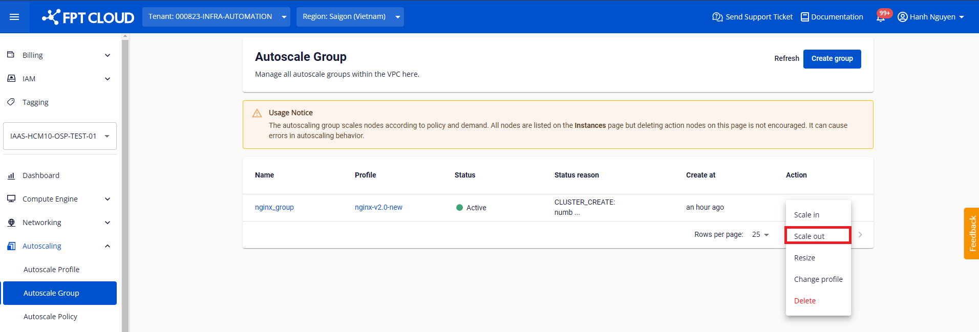 Bước 3: Một hộp thoại sẽ xuất hiện, thực hiện cấu hình thông số và chọn Scale out.