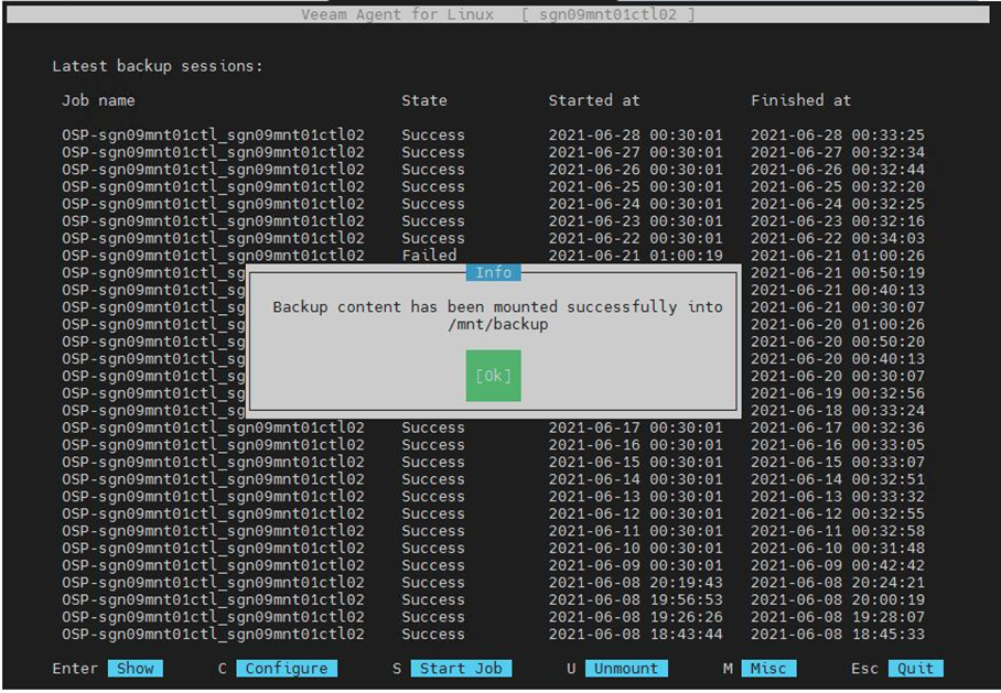 Bước 1: Trên server linux gõ lệnh veeam để khởi mở giao diện quản trị backup. file Bước 2: Nhấn phím R. file Sử dụng phím tab để di chuyển sau đó lựa chọn thời điểm cần khôi phục Bước 3: Cấu hình lại network nếu cần Trường hợp VM khởi tạo để restore add network có DHCP thì không cần Configure network và có thể bỏ qua bước 3 này Còn lại cần phải click vào “Configure network” để đặt IP static cho VM restore. Note: IP của VM này cần được mở kết nối ra internet hoặc đến baas-sgn-gw.fptcloud.com (site HCM) và baas-han-gw.fptcloud.com port 6180 để thực hiện restore. file Thực hiện chọn edit a connection để đặt IP manual cho VM restore: file Chọn Edit để set IP cho VM file Chọn IPv4 Configuration sau đó chọn mode Manual -> Show để đặt IP file Sau khi đặt xong IP chọn OK và nhấn ESC để back lại màn hình chính để tiến hành restore Bước 4: Nhấn phím I để mount phân vùng chưa dữ liệu cần restore vào server. Dữ liệu sẽ được mount vào đường dẫn /mnt/backup file Bước 5: Vào thư mục /mnt/backup Copy file hoặc folder về nơi cần khôi phục. file Bước 6: Sau khi đã toàn thành việc restore file hoặc folder Bạn vào lại phần mềm Veeam và ấn phím U để kết thúc việc restore. file