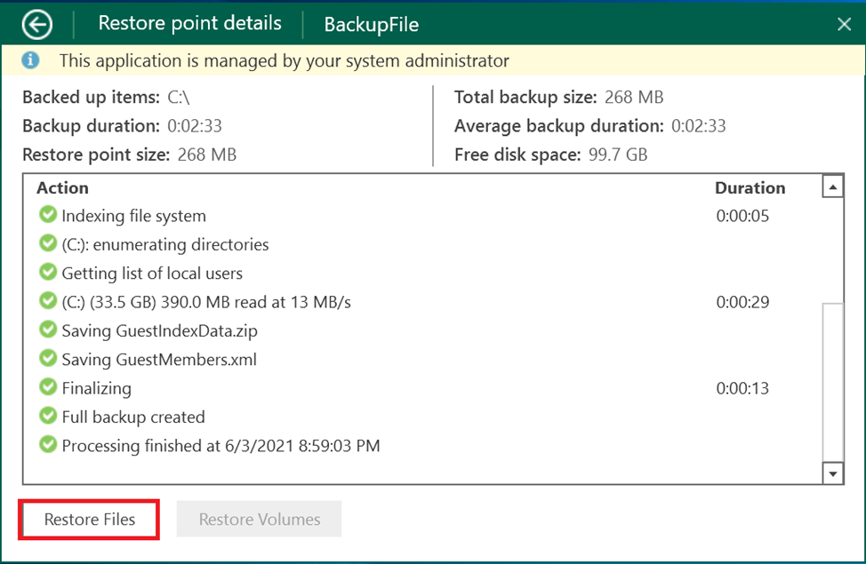 Bước 5: Khởi động công cụ File Level Restore có sẵn trong bộ Veeam Agent For Windows.