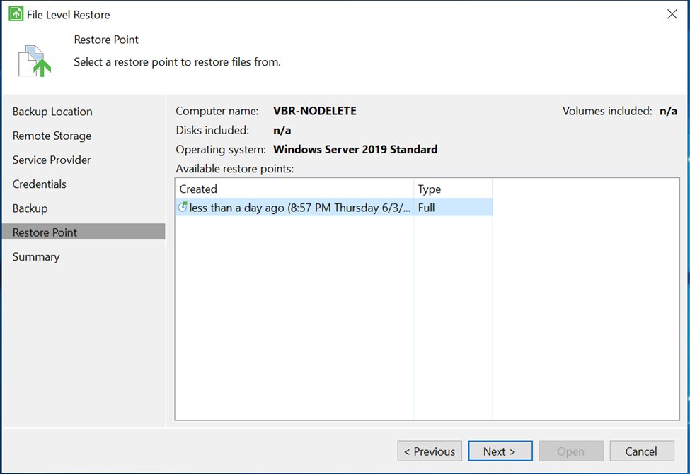 Lưu ý: Trường hợp thời điểm bạn muốn restore cũ hơn bạn phải sử dụn tính năng File Level Restore tham khảo bước 5