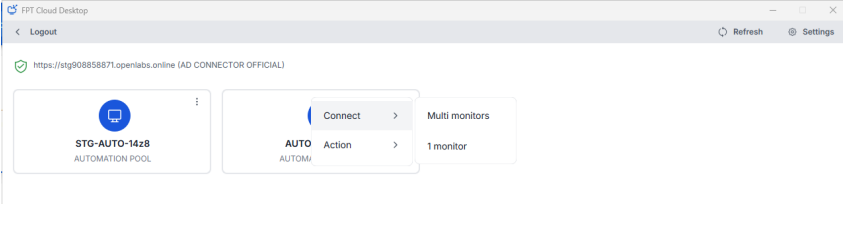 Dành cho người dùng muốn truy cập máy ảo nhanh, không cần cài đặt FCDClient. 1.Truy cập vào Homepage dịch vụ với URL phù hợp Các định dạng URL hợp lệ:
