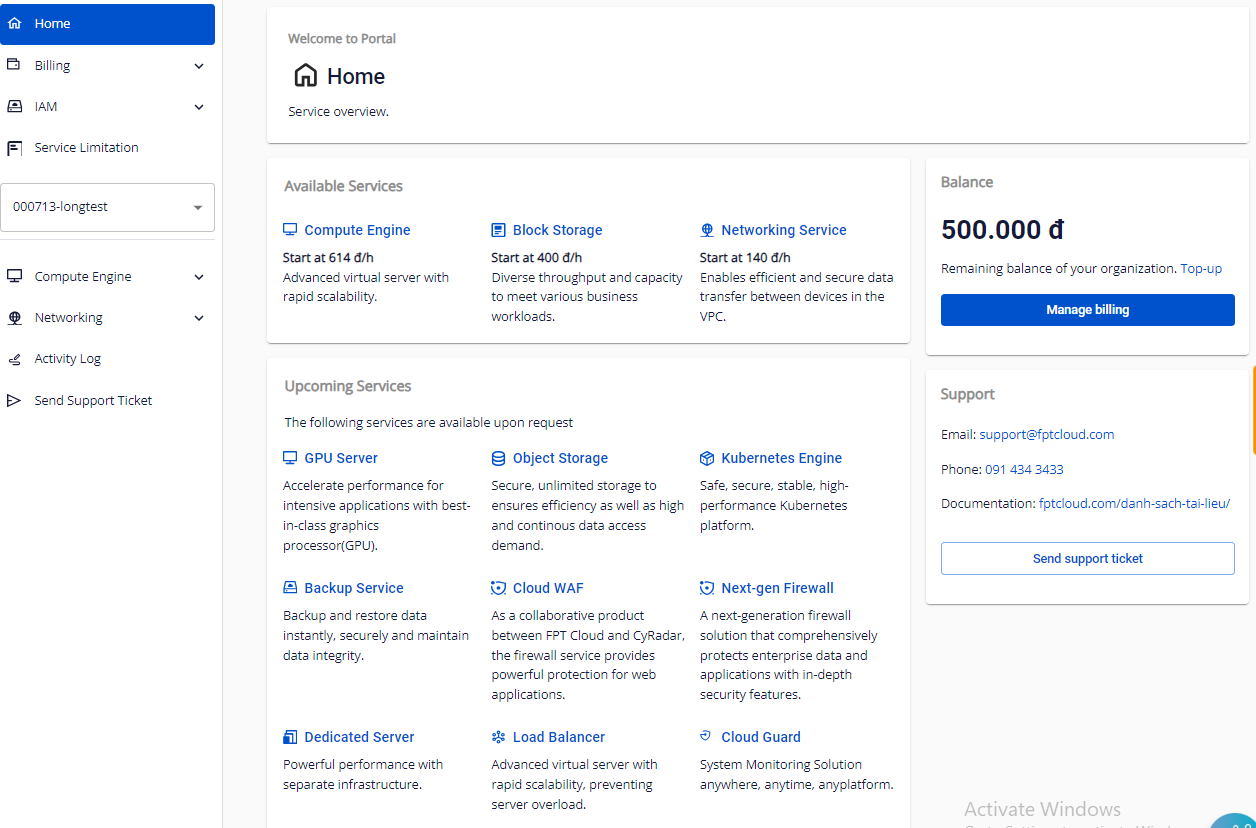 Trang chủ hệ thống Unify Portal gồm những thông tin: • Available Services: danh sách các dịch vụ đã hộ trợ hình thức thanh toán PAYG • Upcoming Services: các dịch vụ sắp hỗ trợ hình thức thanh toán PAYG • Balance: tài khoản của khách hàng file