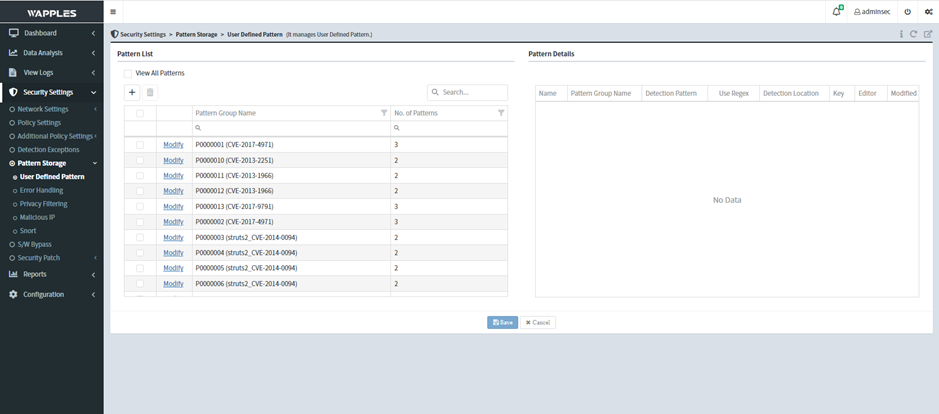 Hiển thị các Pattern đang có sẵn được group để lọc CVE
