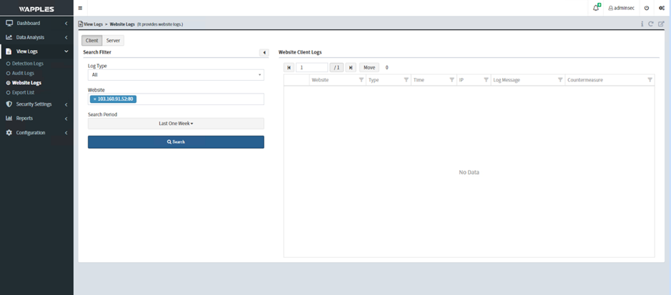 fpt-cloud-wapplesWebsite LogsWebsite Logs Cấu hình lọc log website dựa trên các log detect được từ client và server như Weak Password, Account Enumeration, Session Limiting, URL Encryption Có thể chọn riêng từng loại website tại trường Website