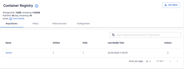 Trên menu FPT Portal chọn Container Registry , nếu bạn đã kích hoạt Container Registry trước đó. Ở tab Repositories sẽ hiển thị list Repositories đã push lên.