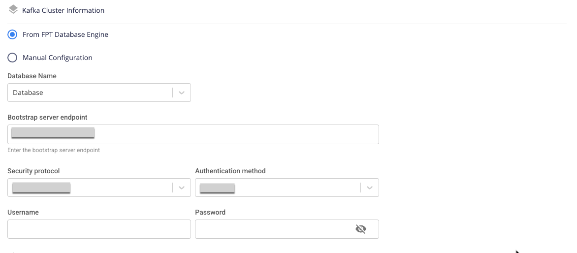 • Kafka Cluster Information: Có hai lựa chọn: From FPT Database Engine, Manual configuration