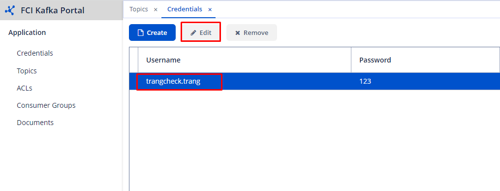 The system allows you to change the password of a credential. To edit, follow these steps: Step 1 : Select the credential that you want to change password > Click Edit. Step 2 : Enter the new password. Step 3 : Click OK to save the information.