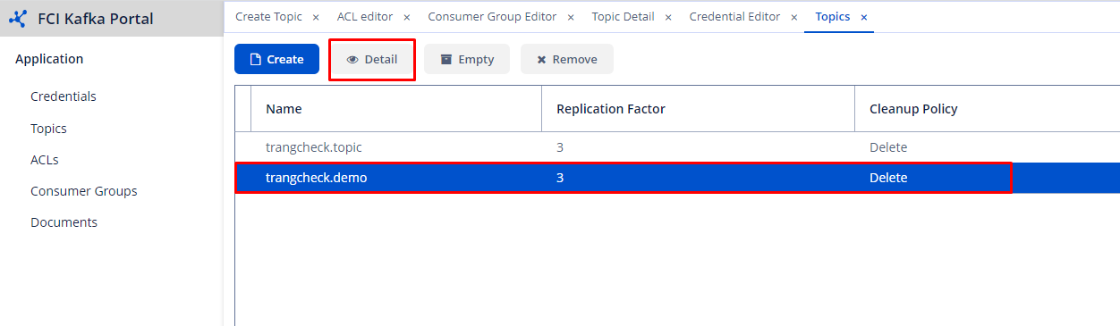 - Detail tab: List the information of the topic that you have entered.