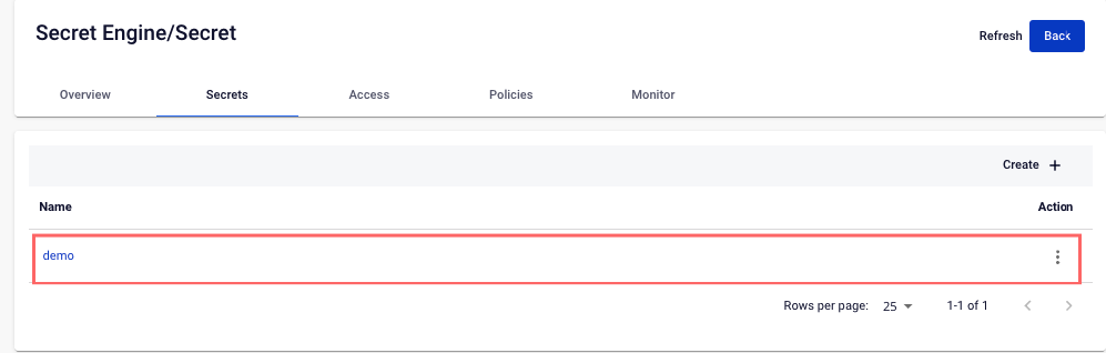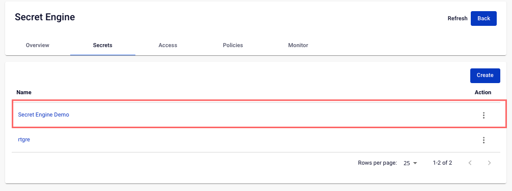 Step 1: Select the Secret Engine to view Secrets on the Secret Engine Management screen: