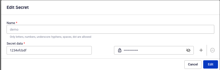 Step 2 : Select the Secret that you want to view or update information