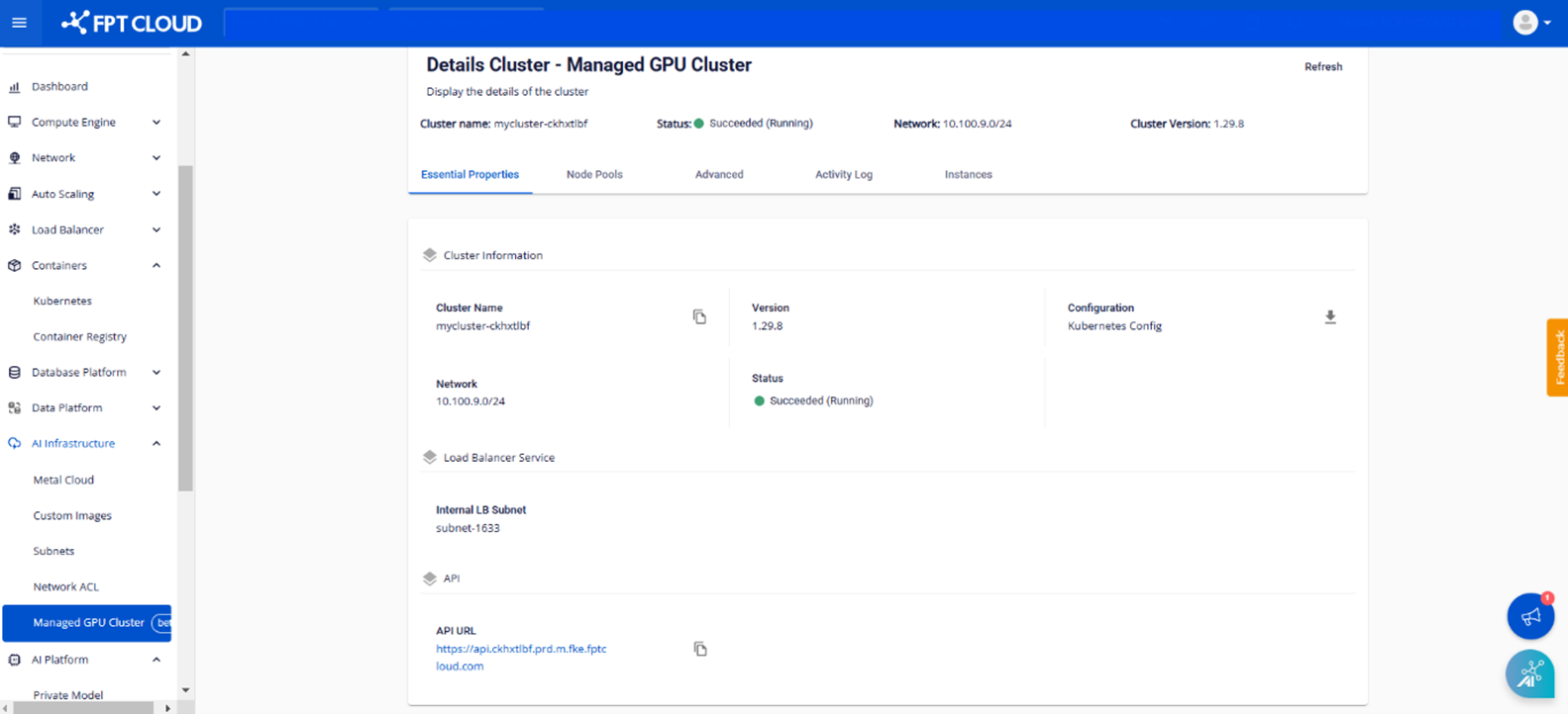 Bạn có thể xem và quản lý danh sách các GPU Cluster đã tạo trên trang Managed GPU Cluster Management. Để mở trang Management, hãy thao tác như sau: