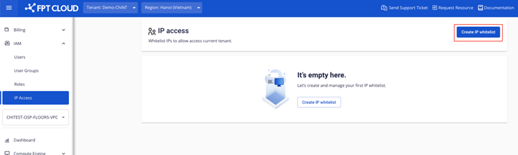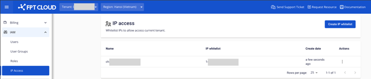 Step 1 : In the IAM selection menu, select the IP access. Here you can manage the list of accessed users.