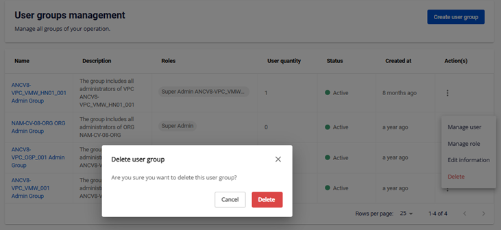 Step 2 : Select Action at the end of the User Group you want to delete from the list. Choose Delete.