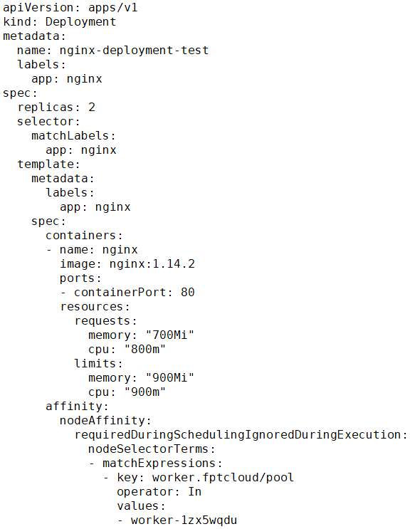 In this case, the value entered in the first image's values section (using Node Affinity Rule) and the value in the nodeSelector section is the name of the worker pool that the user wants to deploy the application to.