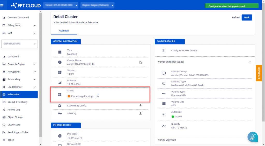 The Cluster scaling process will take a few minutes, and the Cluster status will change to Processing. The Cluster will continue to operate normally after adding a new Worker Group.