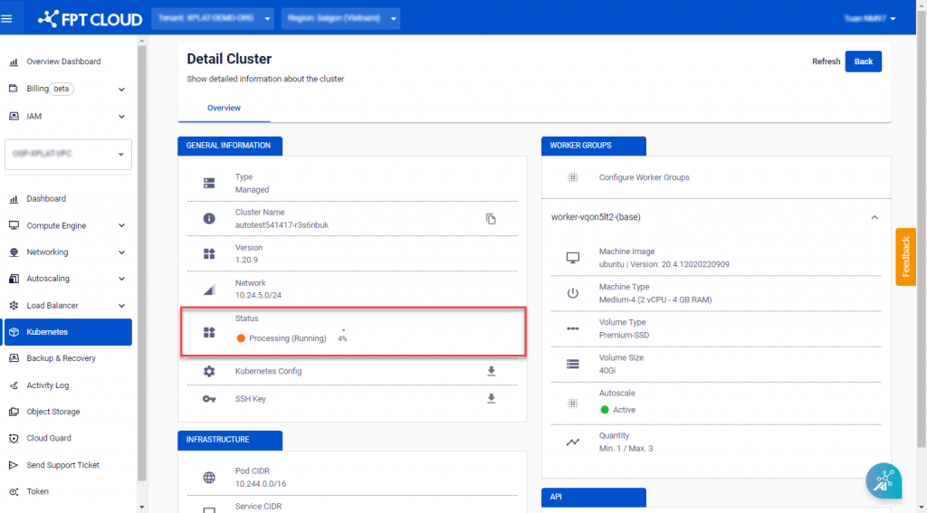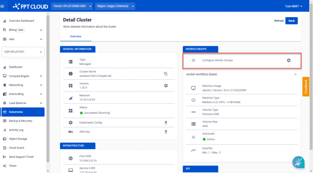 Step 1 : In the menu, select Kubernetes , and the system will display the Kubernetes Management page. Choose a Cluster that you want to modify the Worker Group configuration.
