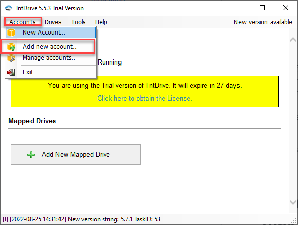 Ngoài trường hợp sử dụng qua FPT Portal , S3 Browser chúng ta có thể sử dụng trực tiếp S3 bucket trên FPT Object Storage như một ổ đĩa của máy tính sử dụng hệ điều hành Windows thông qua công cụ TntDrive qua các bước sau: Bước 1: Truy cập và tiến hành download công tụ TntDrive. Bước 2: Mở TntDrive > Chọn Accounts > Add new account. User guide FPT Object Storage 55 Bước 3: Nhập các thông tin tương tự khi sử dụng S3 Browser. User guide FPT Object Storage 56 Bước 4: Khách hàng sau khi đã nhập thông tin account trong công cụ TntDrive > Chọn Add New Mapped Drive. User guide FPT Object Storage 57 Bước 5 : Chọn các thông tin như sau: