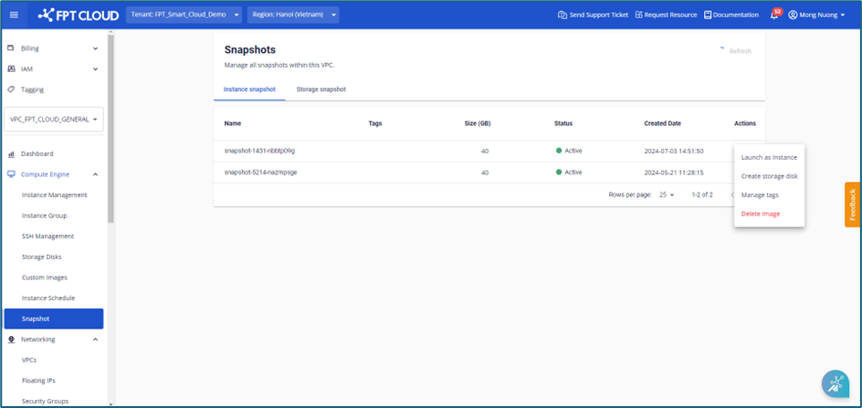 Step 1 : In the menu, select Snapshot. In the Instance snapshot tab, click Manage tags.