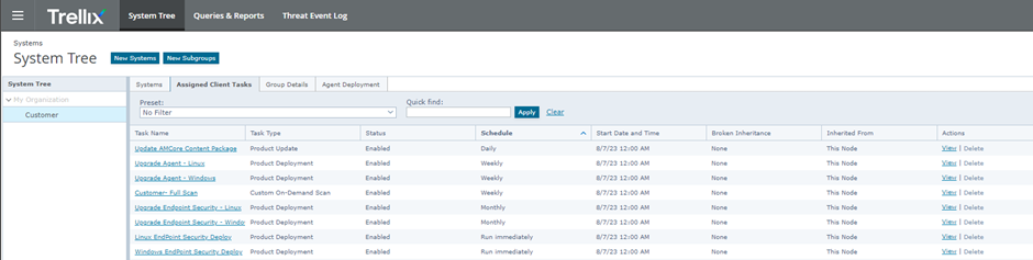 Step 1 : Select Menu > System Tree > Group > Assigned Client Task