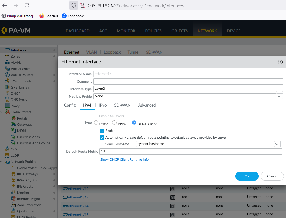- Log in to Palo Alto via the Management IP: