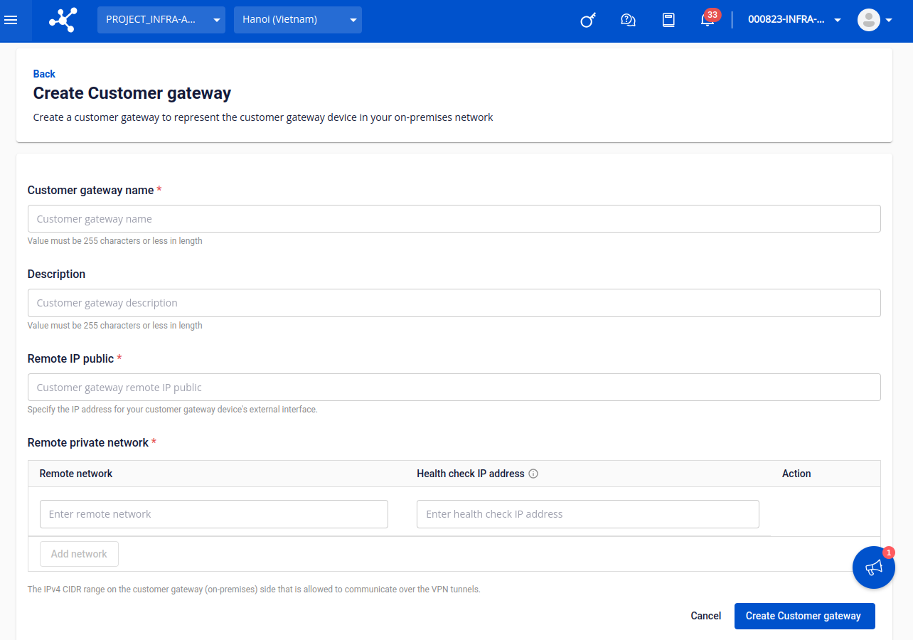 DescriptionMô tả Customer gateway