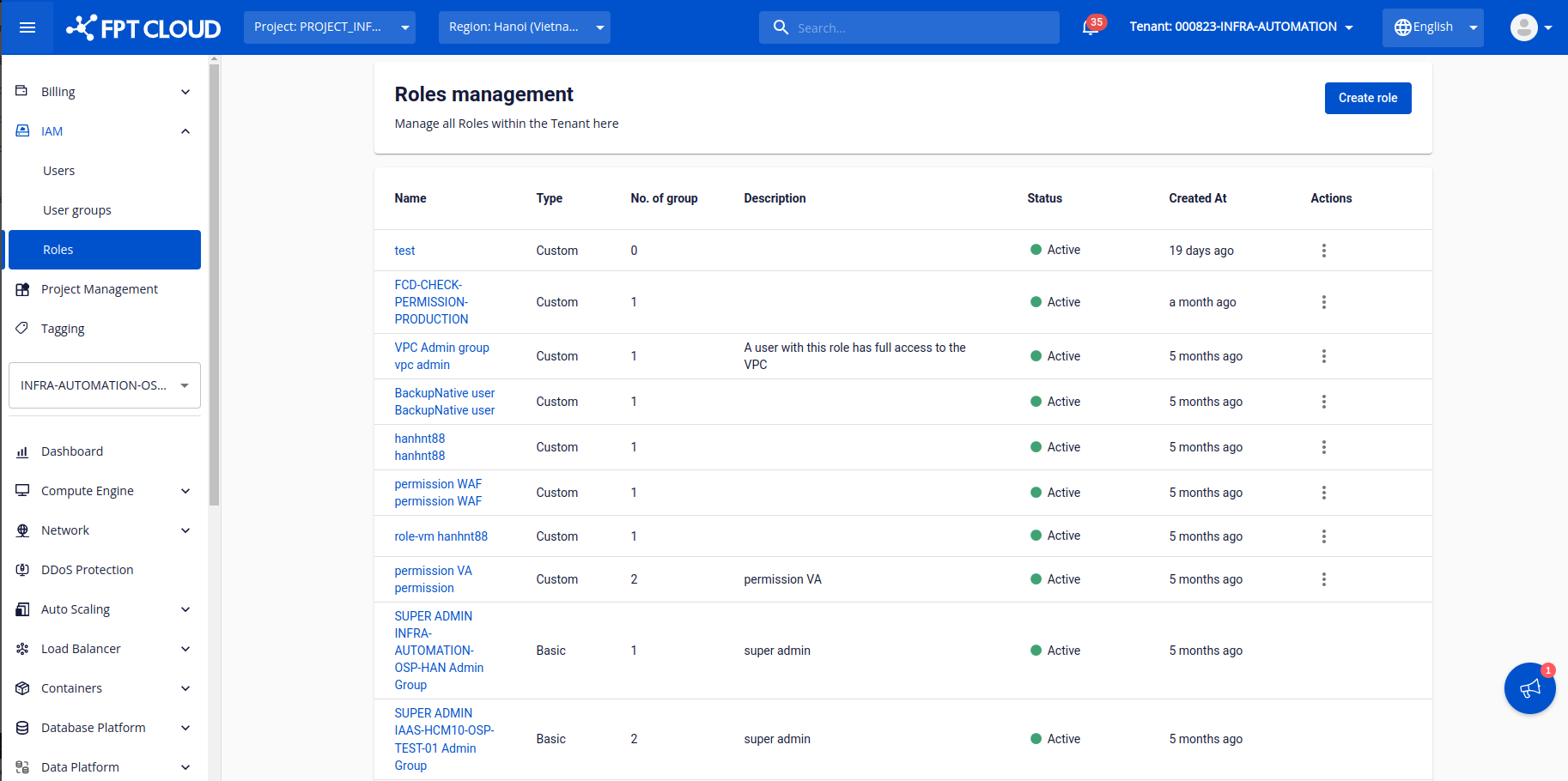 Sau khi hoàn thành các thông tin, click "Create role" để tạo.