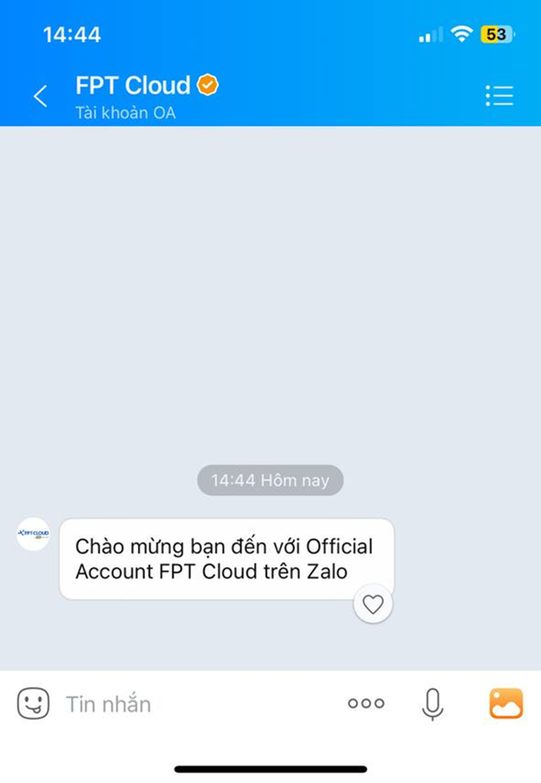 Follow tài khoản chính thức (OA) của FPT Cloud trên Zalo bằng cách sử dụng ứng dụng Zalo để Scan QR code sau đó chọn quan tâm.