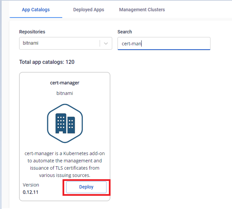 Bước 1 : Click Deploy để thực hiện deploy app catalog