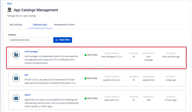 Click Install App để hoàn thành Sau khi deploy xong app sẽ được quản lý trong mục Deployed Apps