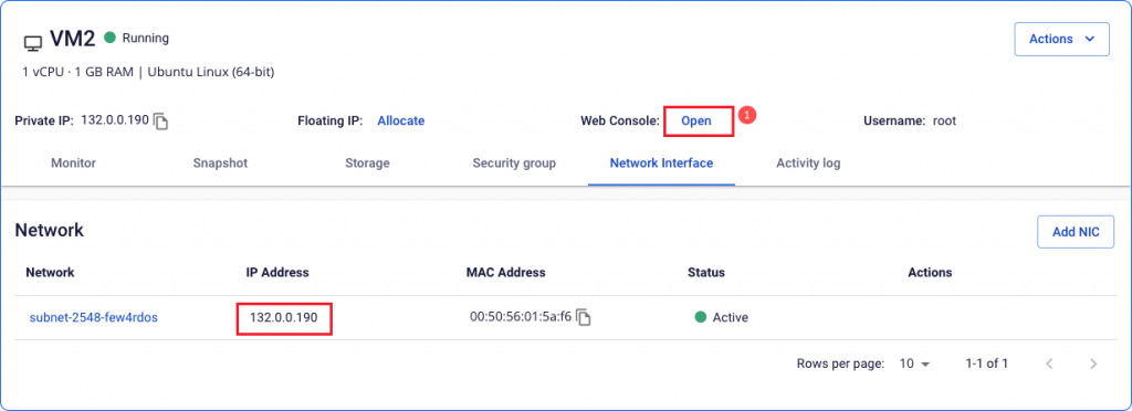 • Sau khi edit NIC, IP NIC là 132.0.0.190 NIC VM ubuntu