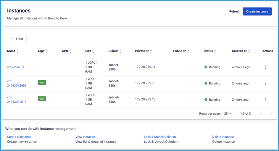 file Bước 3 : Hệ thống tự điều hướng sang màn hình danh sách instance. Clone instance sẽ được khởi tạo ở trạng thái “Pending” file Bước 4 : Sau khi khởi tạo hoàn tất, hệ thống chuyển sang trạng thái “Running” file