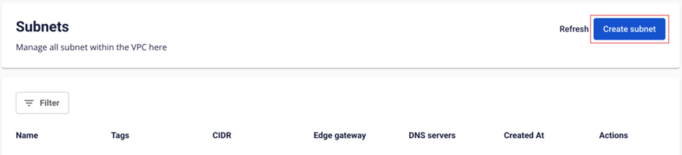 file Bước 3 : Chọn Create subnet để tạo Subnet mới. Hệ thống sẽ tiến hành xử lý và thông báo kết quả Nếu thành công, Subnet vừa tạo sẽ được hiển thị ở bảng Subnets. file