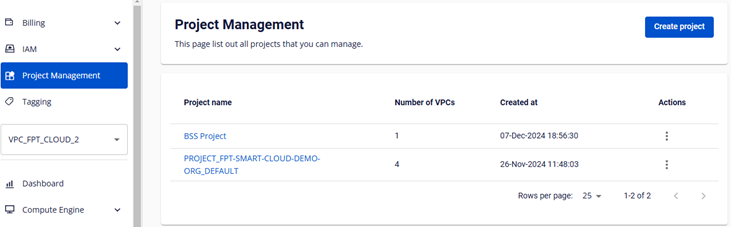 • Chỉ có thể xóa Project không có VPC