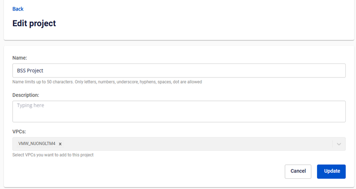 • Tenant owner có thể chỉnh sửa thông tin project