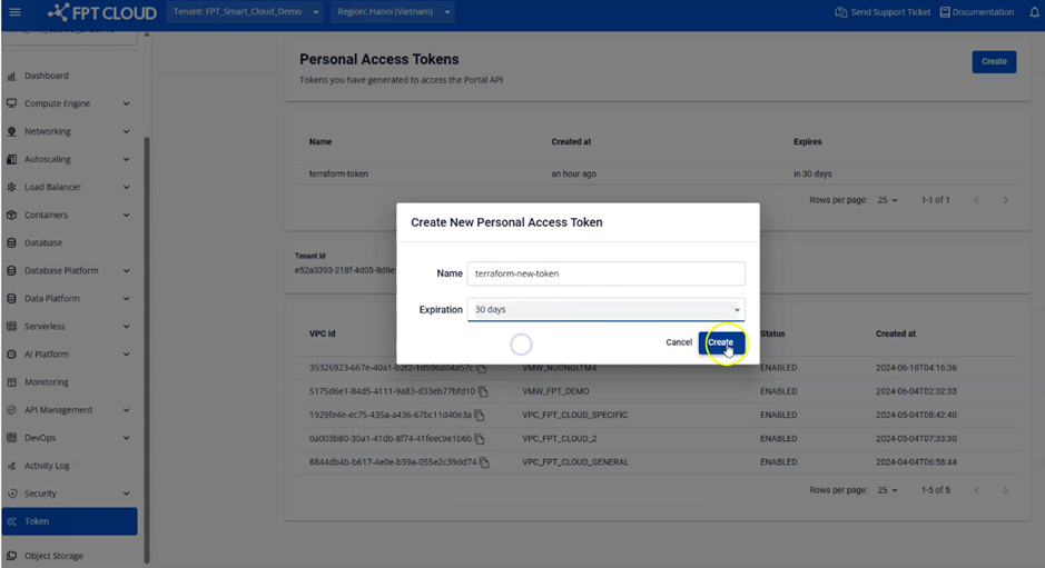4. Cách lấy token sử dụng cho terraform FPTCloud