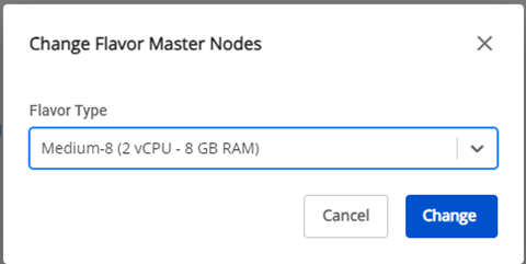 Bước 1 : Ở menu chọn Kubernetes , hệ thống sẽ hiển thị trang Kubernetes Management. Bước 2 : Chọn Cluster muốn thay đổi cấu hình nodes trên danh sách. Bước 3 : Chọn tab Advanced , bạn có thể thay đổi Flavor (cấu hình CPU, RAM) của NFS Server bằng cách chọn icon Setting ở config tương ứng. Bước 4: Nhập dung lượng cần tăng thêm > Chọn Change để thực hiện thay đổi.