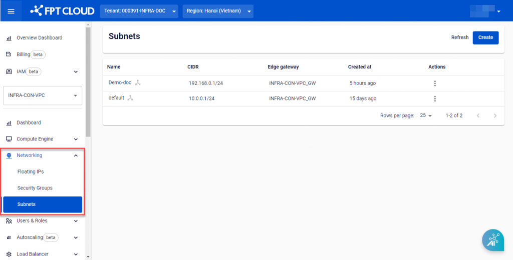 Nếu đây là lần đầu tiên sử dụng FPT Cloud, một số dịch vụ có thể chưa được mở cho tài khoản của bạn. Hãy liên hệ với đội ngũ hỗ trợ của chúng tôi và cung cấp các thông tin về cấu hình bạn mong muốn. Chúng tôi sẽ cấp cho bạn các tài nguyên cần thiết như Ram + CPU, Storage, Public IP,… để bạn sử dụng dịch vụ FKE.